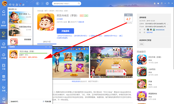 例如,首次进入欢乐斗地主需下载游戏,下载进度会显示在进度条上。