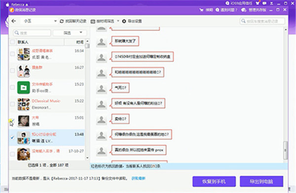 4、备份完成后,会自动打开微消息记录框,并提示可以找回已删微信记录。点击「开始找回」就会有惊喜的发现